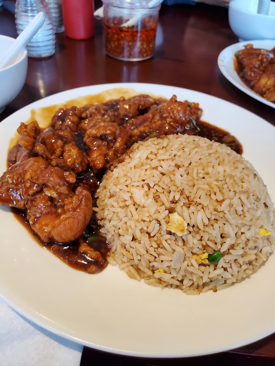Take out only place. Best bang for the buck. Lunch special is 9.99+tax. Only thing is it gets busy for lunch so sometimes you had to wait as long as 40 minutes - I encourage you to call ahead to order. Regardless chili chicken is to die for.