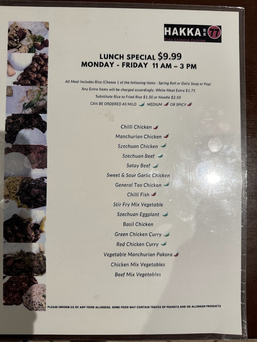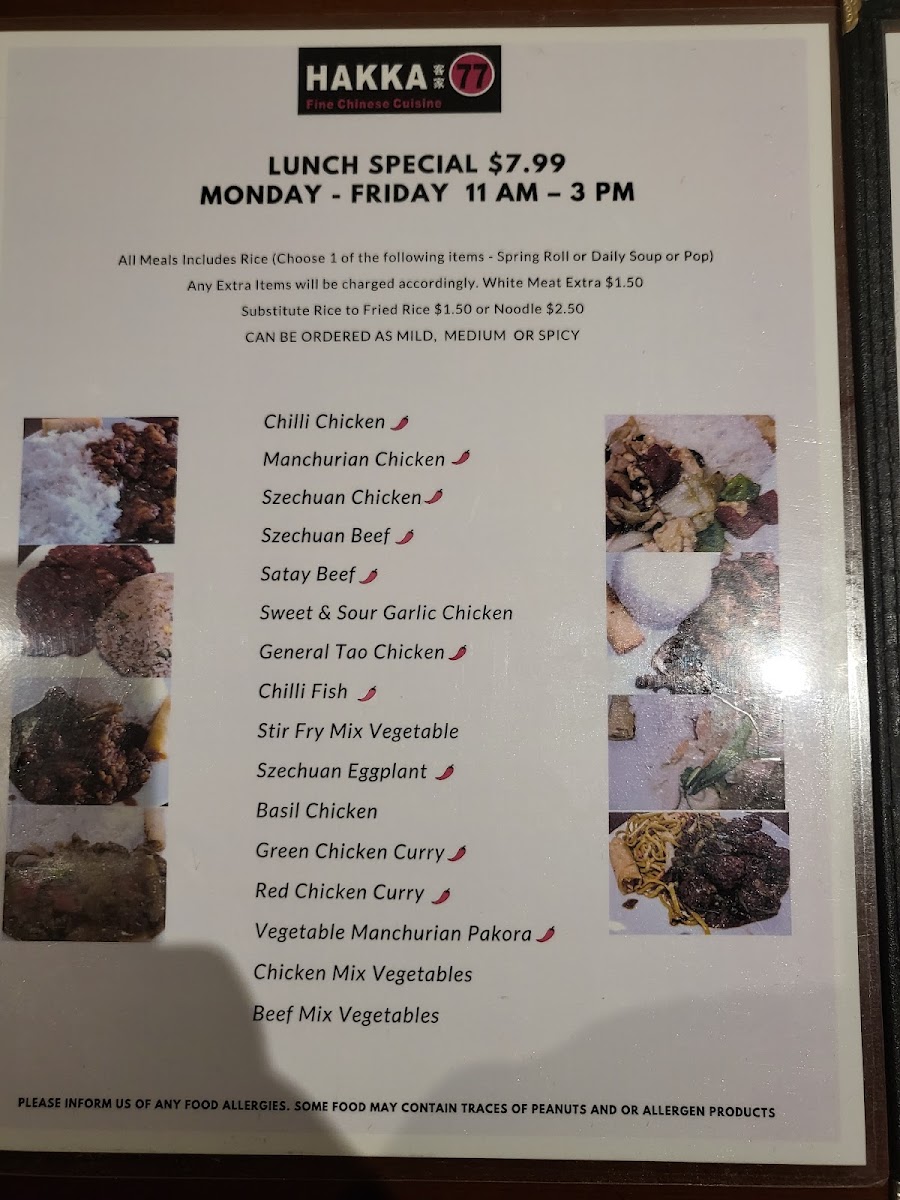 The menu at Hakka 77 offers a warm selection of comforting Chinese dishes, balancing casual lunch options with flavorful dinner choices. The style leans toward familiar, satisfying plates that invite both quick meals and relaxed dining experiences, making it a practical spot for everyday enjoyment.